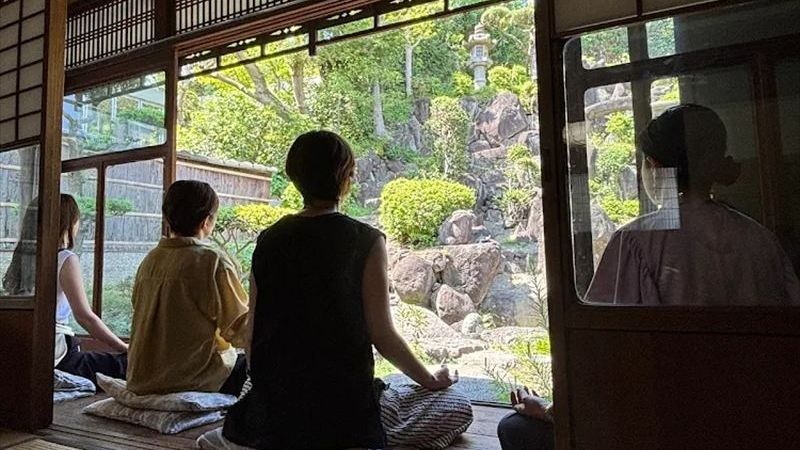 - 和風庭園を眺めながら、廊下で静かに瞑想